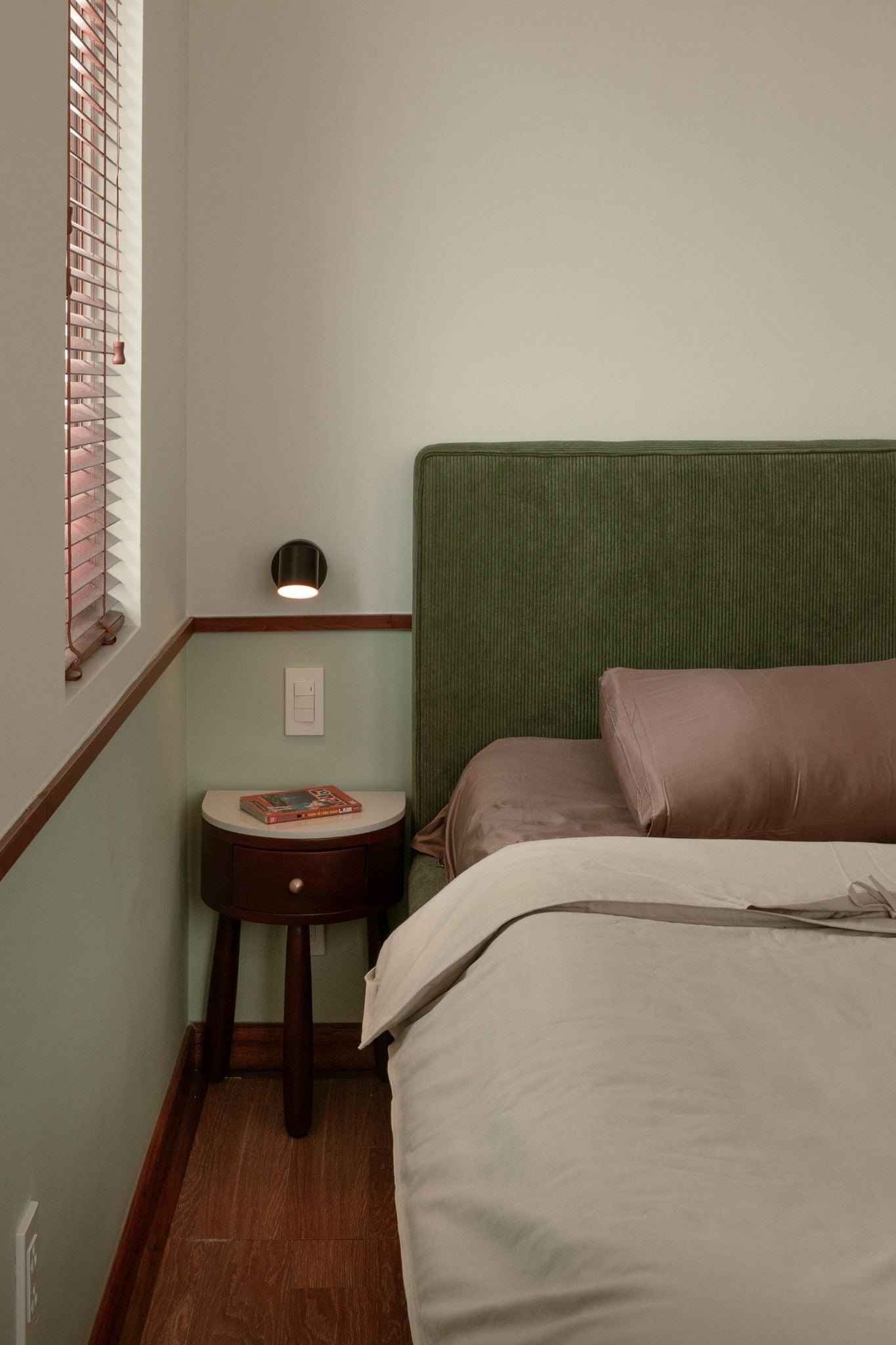 Lấy cảm hứng từ chính tên của chung cư, Cảnh Viên - được phát triển mang hơi hướng Mid-Century Modern: một nhịp cầu nhẹ nhàng giữa hiện đại và hoài niệm, giữa tiết chế và bản sắc mang tinh thần sống khoáng đạt, hiện đại nhưng cũng đầy tối giản, nơi chất tự nhiên trở thành chủ thể. Sắc xanh rêu và gỗ trầm định hình không khí chung: tĩnh tại, có chiều sâu nhưng không gò bó.