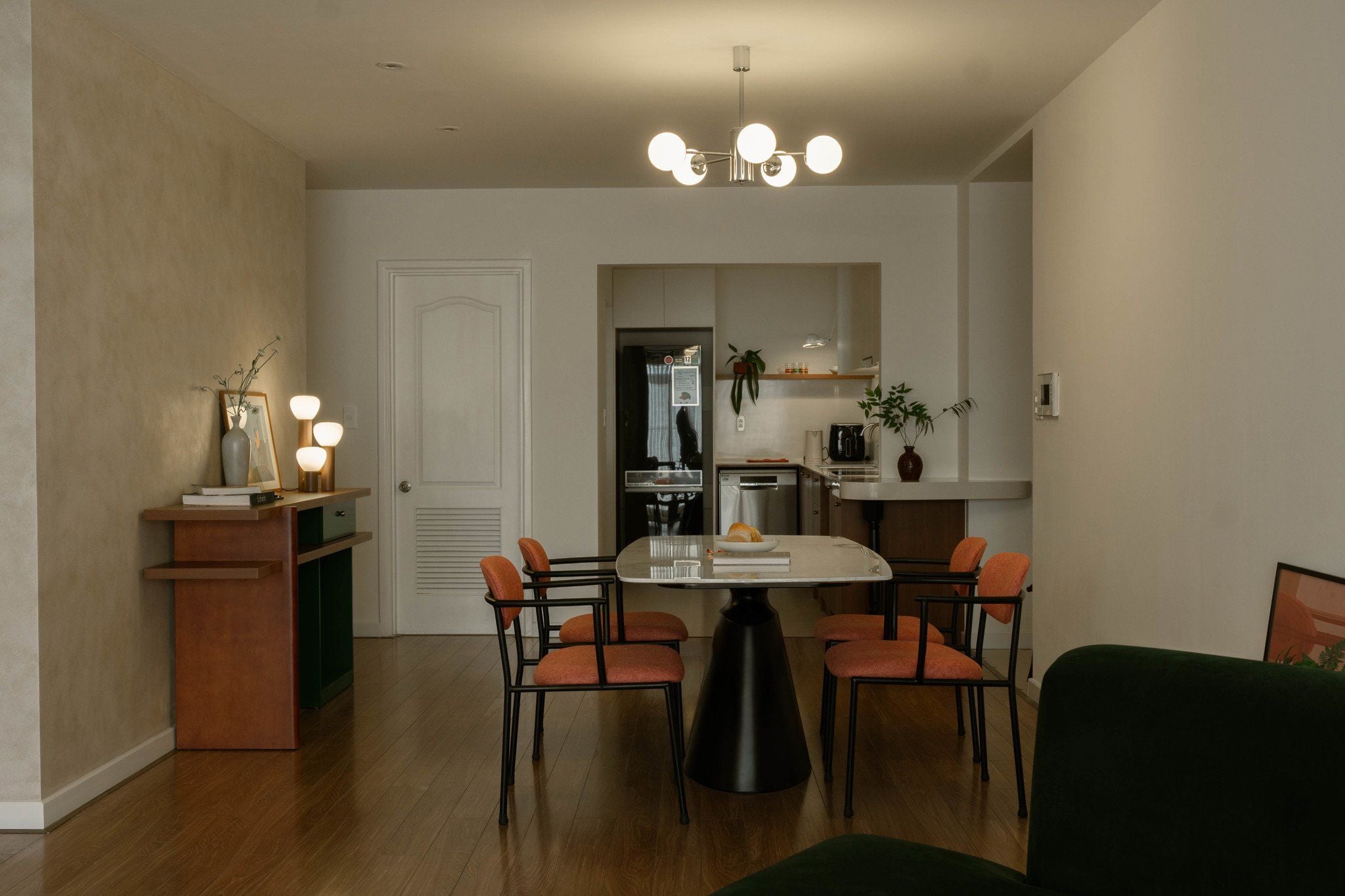 Chỉ mang hơi hướng Mid-Century Modern, Nhà không quá ràng buộc trong một trường phái quá cụ thể, mỗi món nội thất đều mang sắc thái riêng biệt, được bố trí ở những vị trí được tính toán kỹ lưỡng, vừa tạo điểm nhấn, vừa hòa quyện với không gian xung quanh.