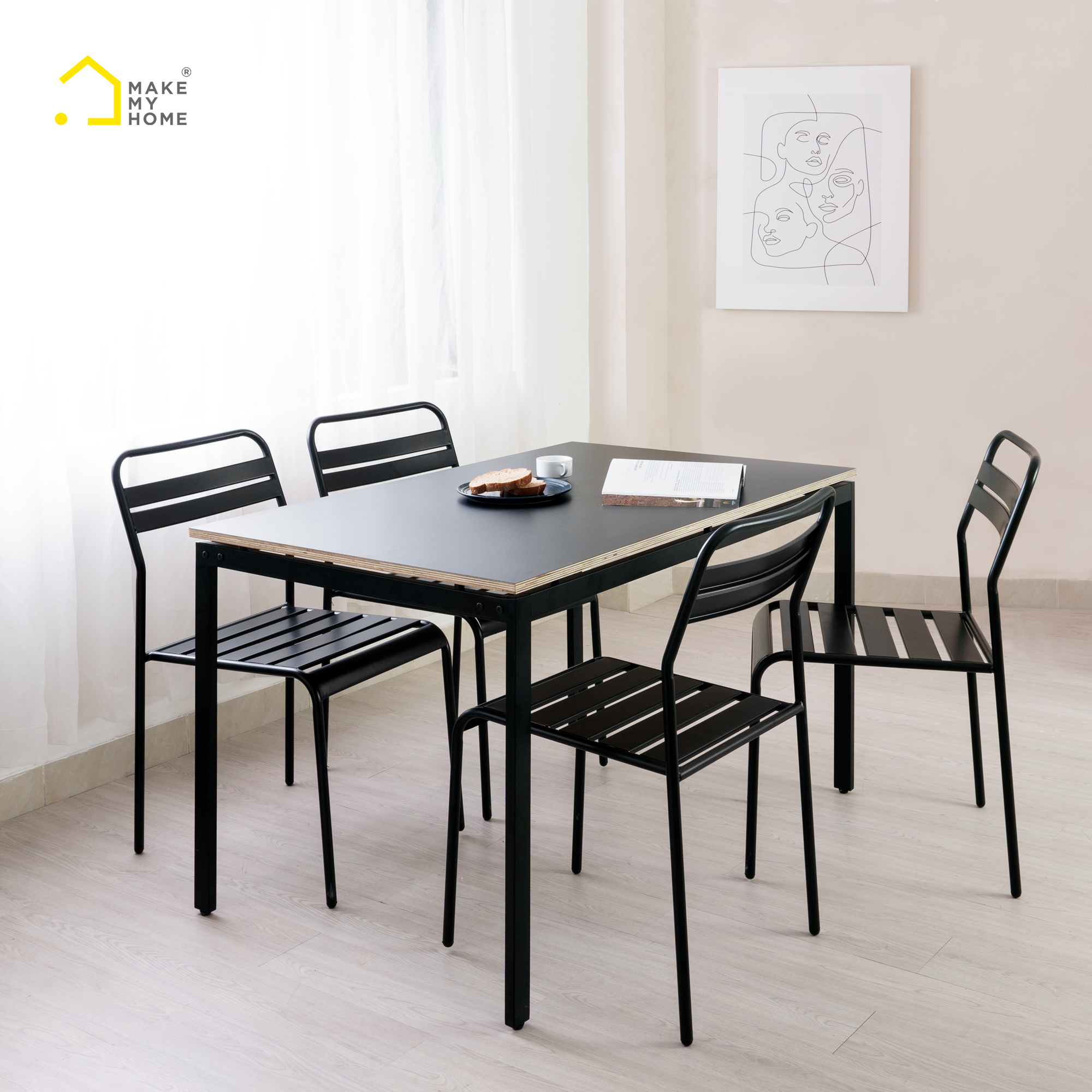 Bàn HONEY PLUS đen và 4 ghế TONY đen