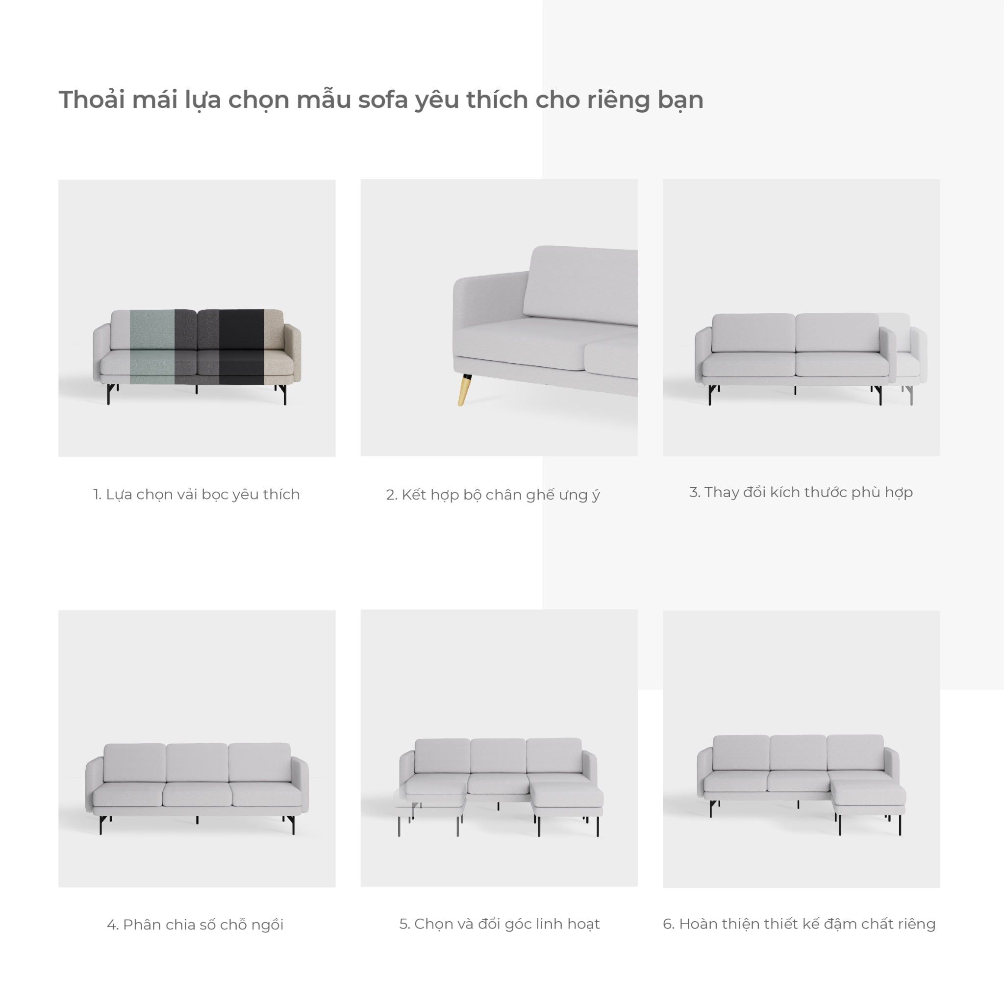 Điểm đặc biệt của dòng sản phẩm sofa của Make My Home chính là việc bạn có thể tuỳ chọn vải trong bộ sưu tập chất liệu dành cho sofa. Với hơn 45 mẫu vải cùng sự đa dạng về giá và phong cách, khám phá ngay để sở hữu chiếc sofa hoàn hảo dành riêng cho bạn.